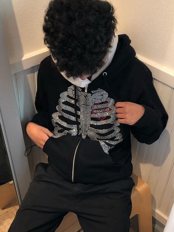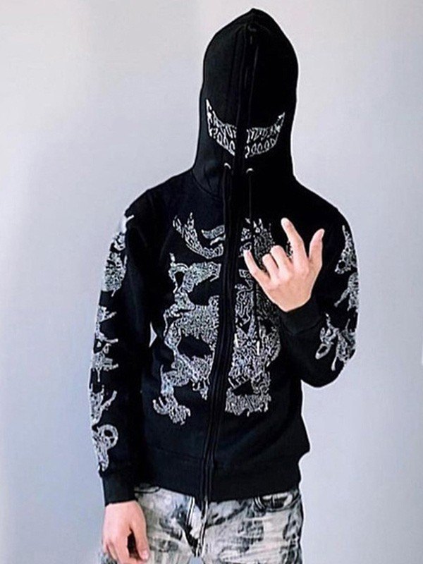 Halloween-Strassschädel-Kapuzenpulli mit Reißverschluss für Herren