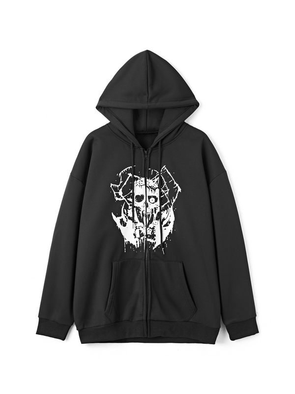 Übergroßer Kapuzenpullover mit Gothic-Schädelmuster für Herren