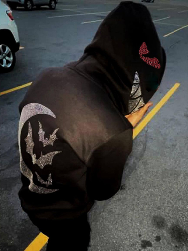 Schmaler, übergroßer Kapuzenpullover mit Devil Moon-Strass-Print für Herren