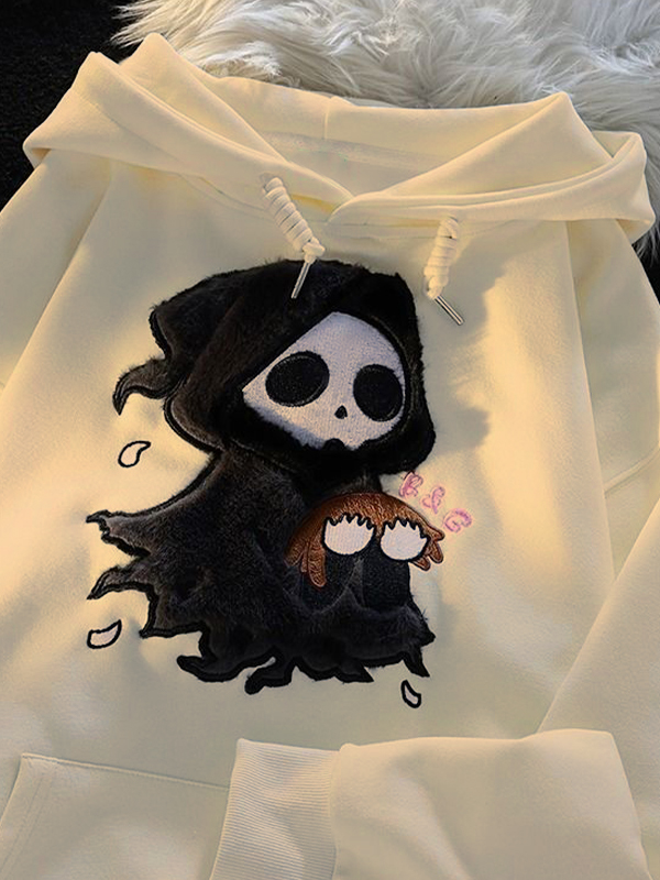 Flauschiger, übergroßer Kapuzenpullover mit Cartoon-Geist-Stickerei