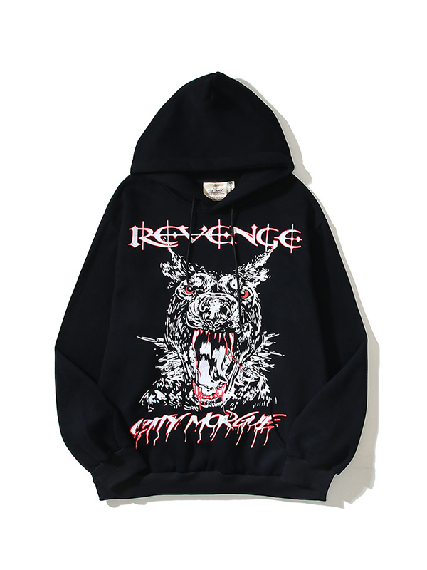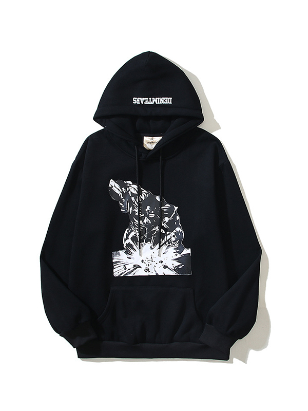 Übergroßer Langarm-Kapuzenpullover mit Hip-Hop-Print für Herren