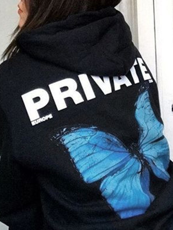 Übergroßer Kapuzenpullover mit Schmetterlings-Graffiti-Print