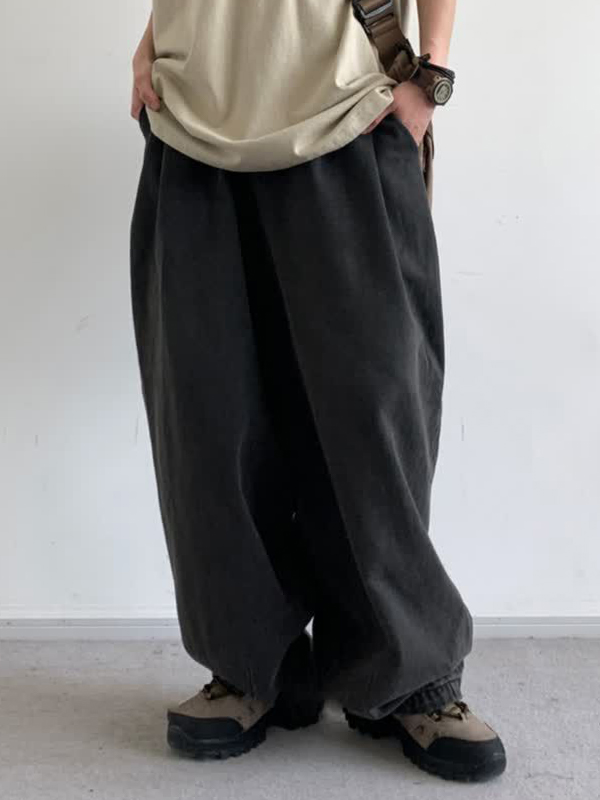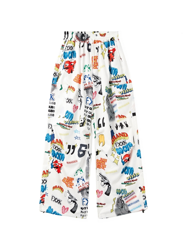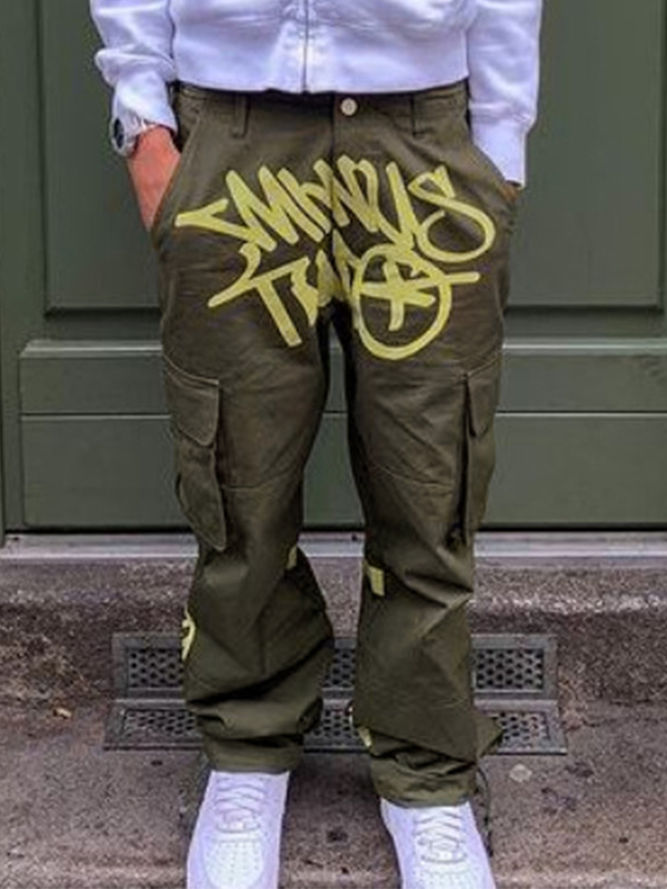 Herrenhose mit Buchstabendruck und mehreren Taschen und Kordelzug und weitem Bein