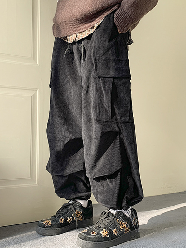 Herren-Cargohose aus Cord mit großen Taschen und Kordelzug