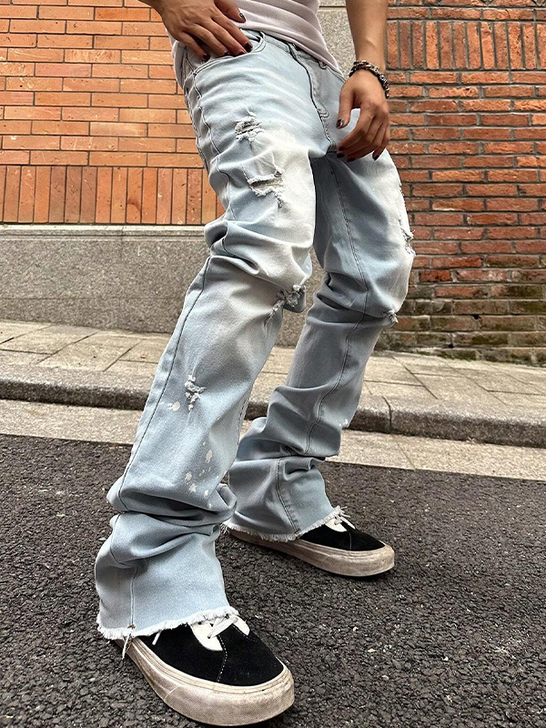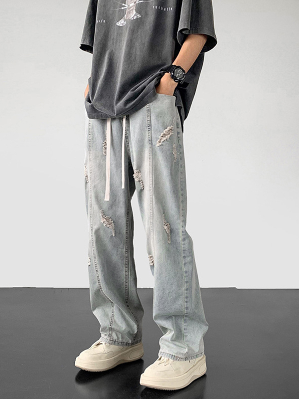 Gewaschene, zerrissene Burr-Jeans für Herren mit geradem Bein