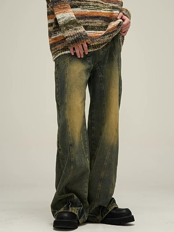 Schwere Jeans mit strukturierten Spleißdrucken