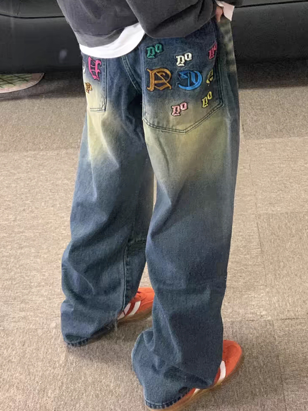 Lockere Jeans für Herren mit digitaler Stickerei