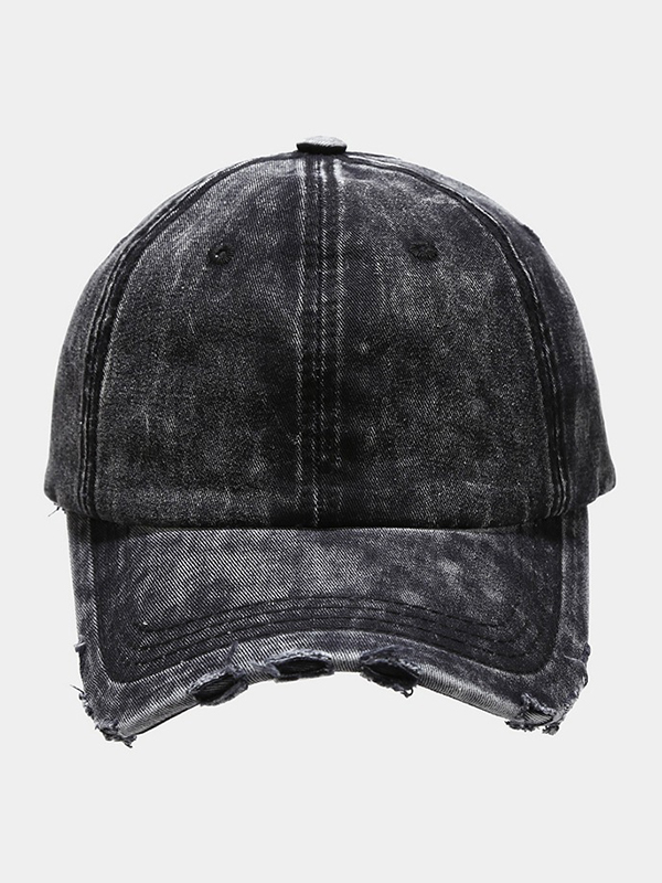 Zerrissene Baseballkappe aus gewaschenem Denim im Distressed-Look