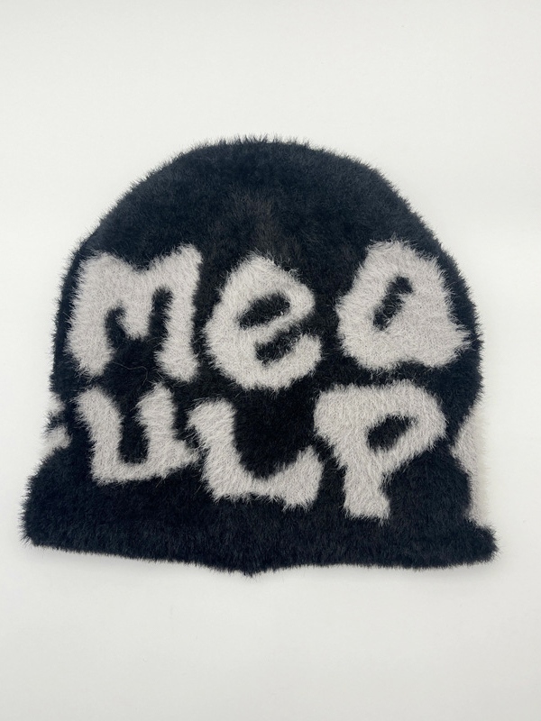 Plüsch-Beanie mit kontrastfarbenem Buchstaben-Print