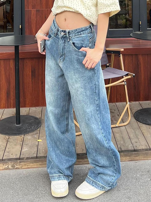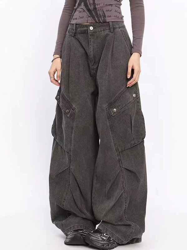 High Street Vintage-Jeans mit mehreren Taschen und weitem Bein