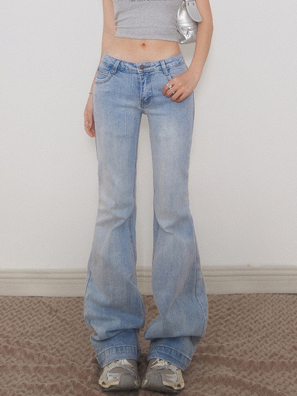 Weite Taille, geknöpfte Slim Fit Schlagjeans