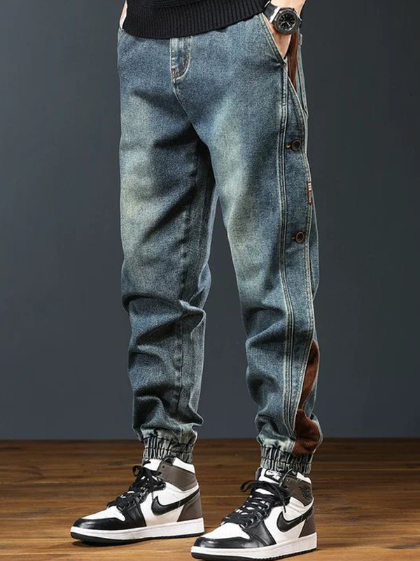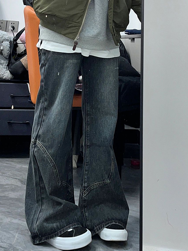 Lose Herrenjeans mit Vintage-Waschung und rohem Rand