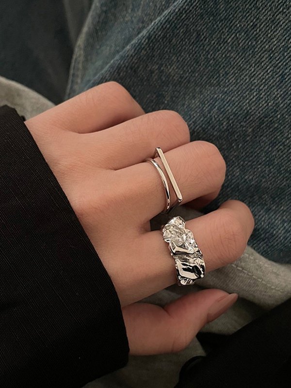 2 Stück Unregelmäßiges Silberring-Set