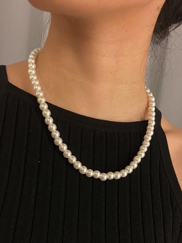 Vintage weiße Kunstperlenkette