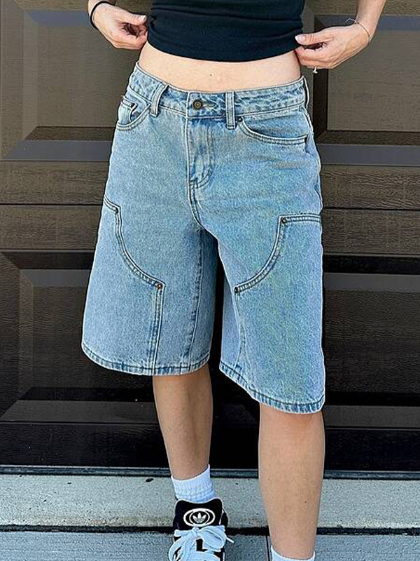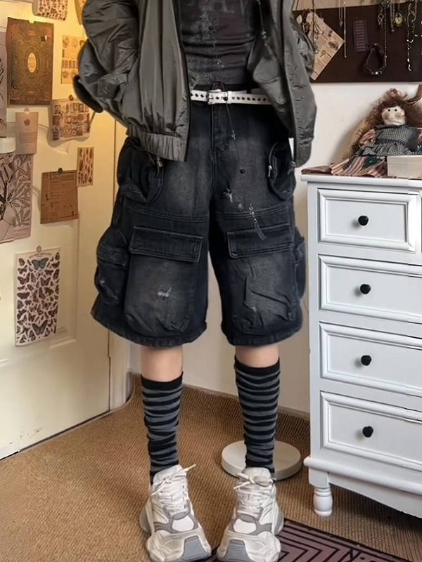 Verwaschene Vintage-Jeansshorts mit mehreren Taschen