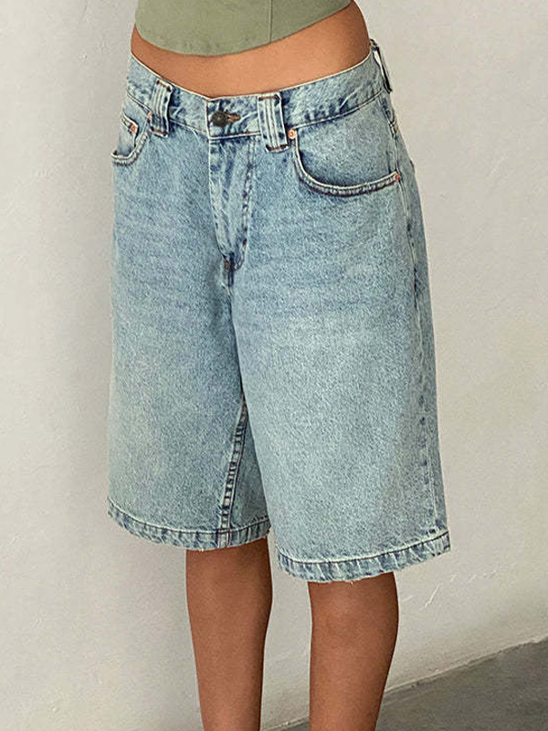 Niedrig geschnittene Denim-Bermudashorts