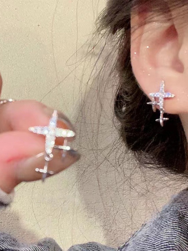 6 Stück glänzende Schmetterlings-Herz-Diamant-Ohrstecker
