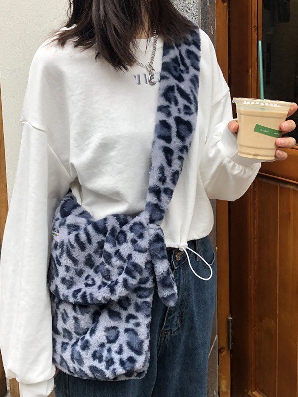 Fuzzy Umhängetasche mit Leopardenmuster