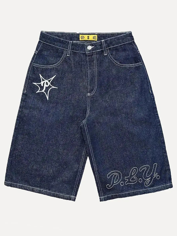 Lockere, lässige Jeansshorts für Herren mit Spinnenmuster