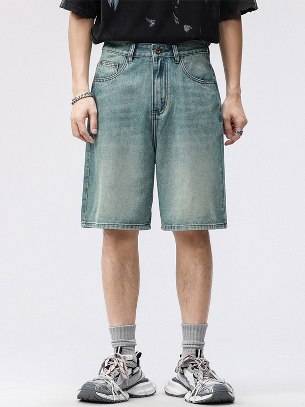 Gerade Jeansshorts im Retro-Stil mit weitem Bein für Herren