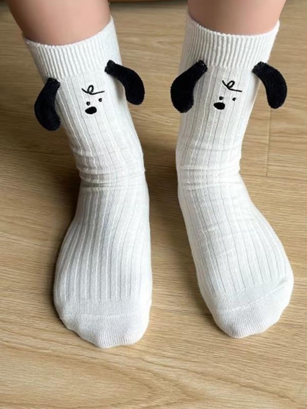 Dreidimensionale Socken mit aufgestickten Welpenohren