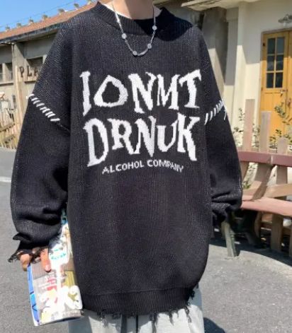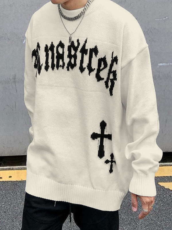 Übergroßer Herrenpullover mit Vintage-Kreuzbuchstaben-Print