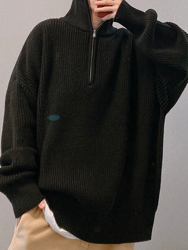 Solider Strickpullover mit halbem Reißverschluss für Herren