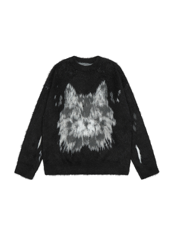 Herren Vintage Abstrakter Kitty Jacquard Pullover Pullover
