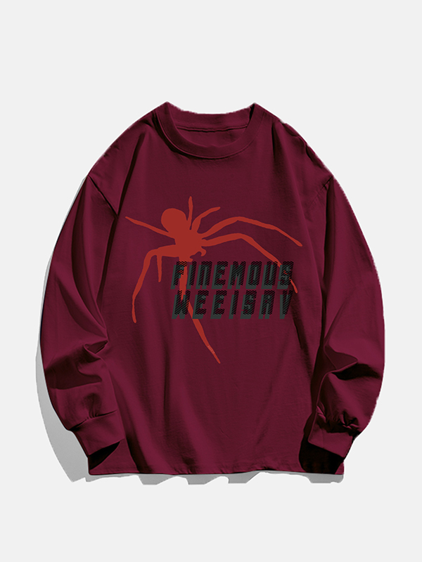 Herren-Langarm-T-Shirt mit Buchstaben- und Spinnenmuster