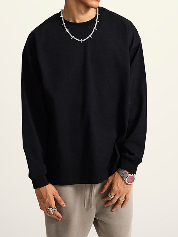 Einfarbiges Herren-Langarm-T-Shirt mit tief angesetzter Schulterpartie