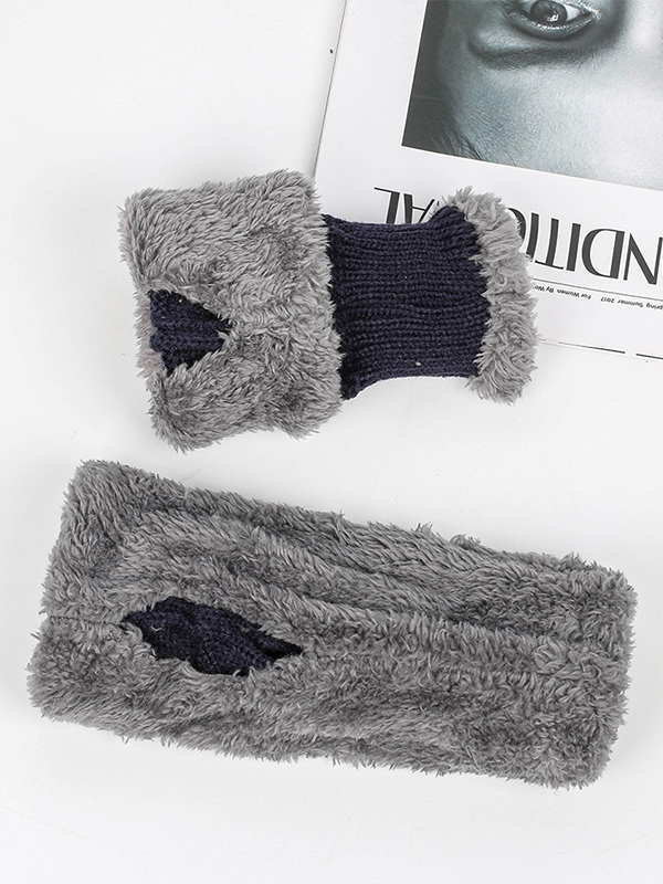 Fingerlose Strickhandschuhe mit dickem, warmem Fleecefutter