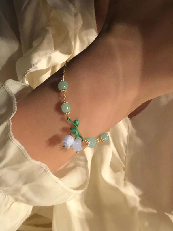 Verstellbares Gliederarmband mit Blumenanhänger aus Jadeimitat