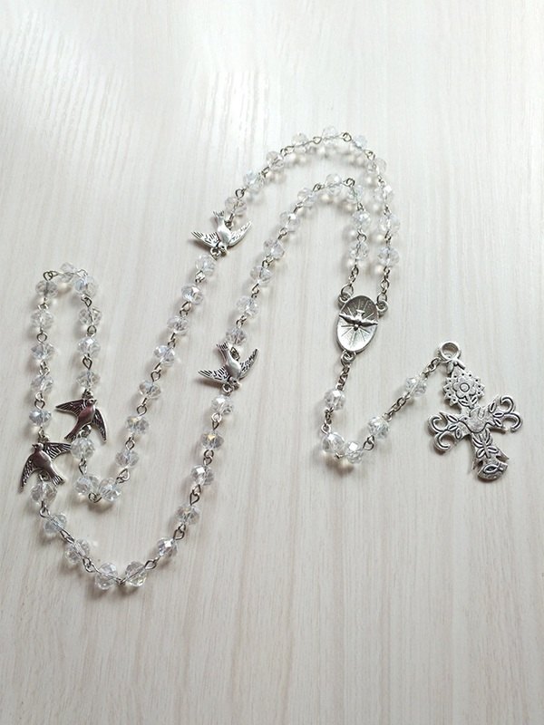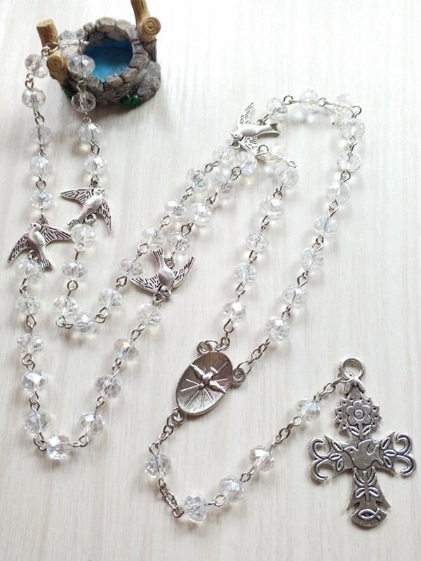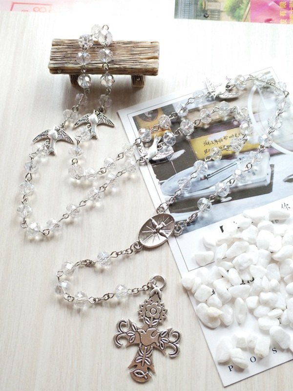 Taube Kreuz Anhänger lange Perlenkette Menge
