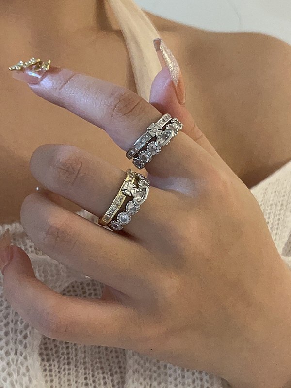 Zwei-Wege-Strass-Planeten-Charme-Manschettenring