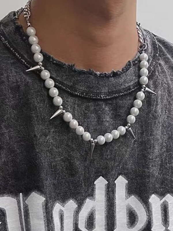 Herren-Punk-Halskette mit Kunstperlen-Ohrstecker und Splice-Anhänger Menge