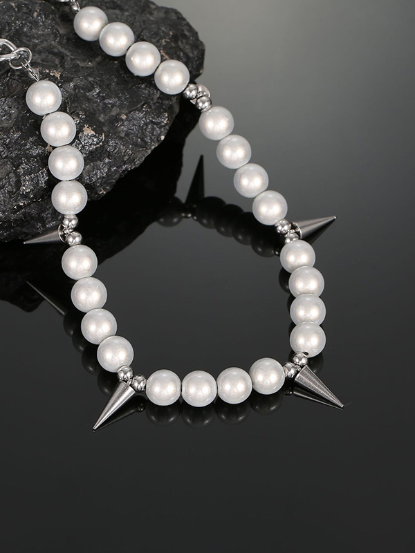 Herren-Punk-Halskette mit Kunstperlen-Ohrstecker und Splice-Anhänger