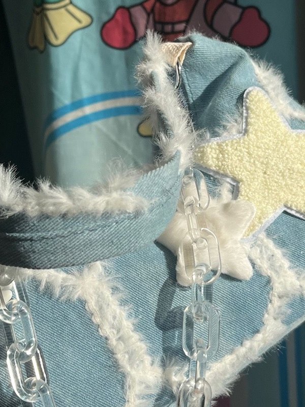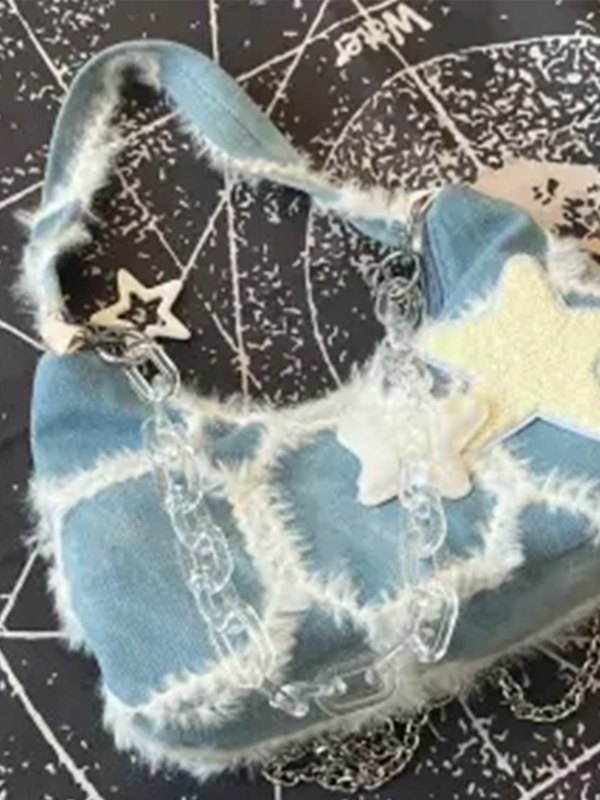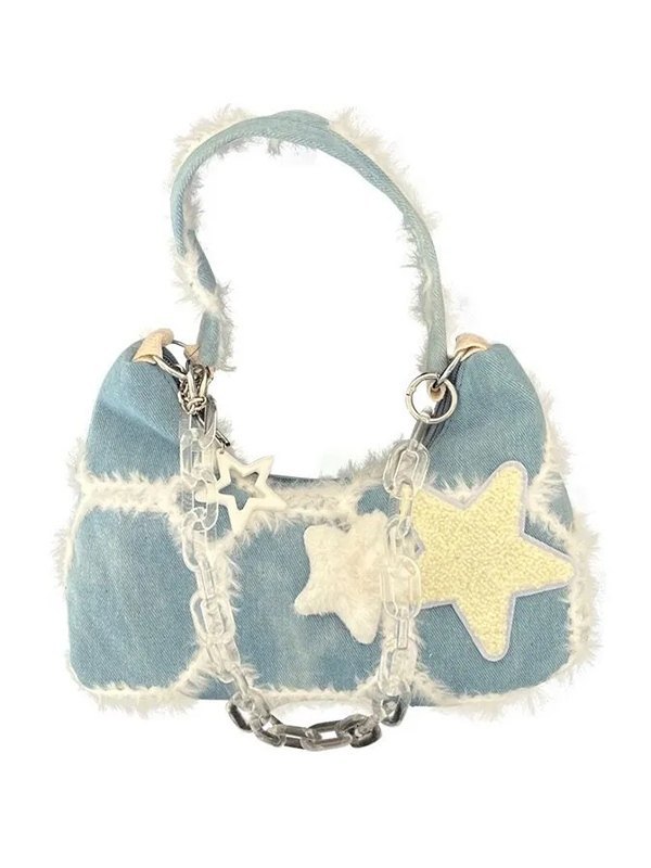 Fuzzy Trim Star Denim Umhängetasche Menge