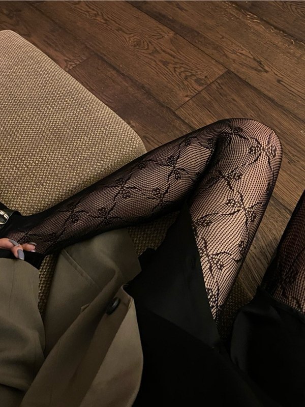 Schwarze Netzstrumpfhose mit Schleifenmuster
