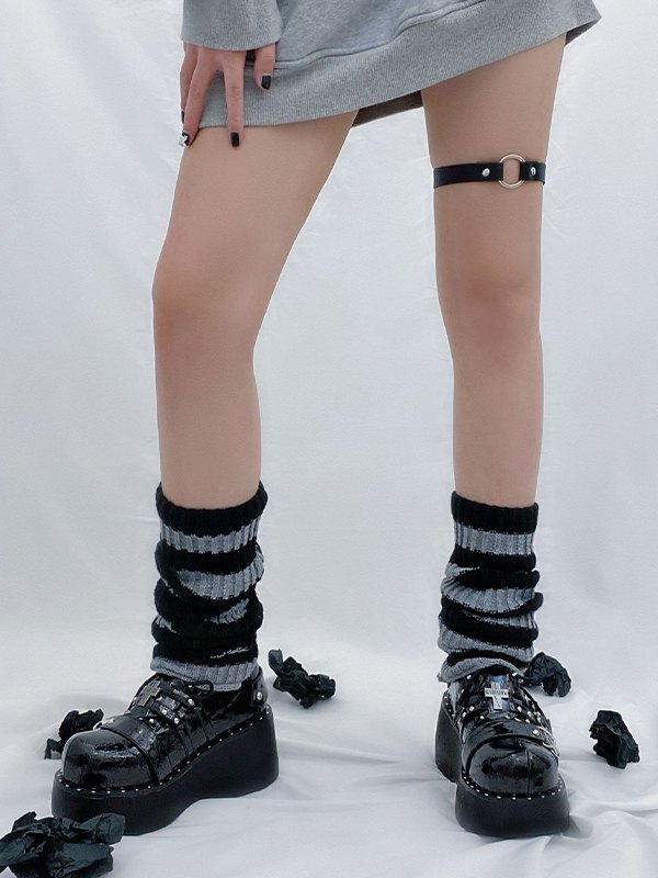 Vintage gestreifter gerippter Strick-Beinwärmer