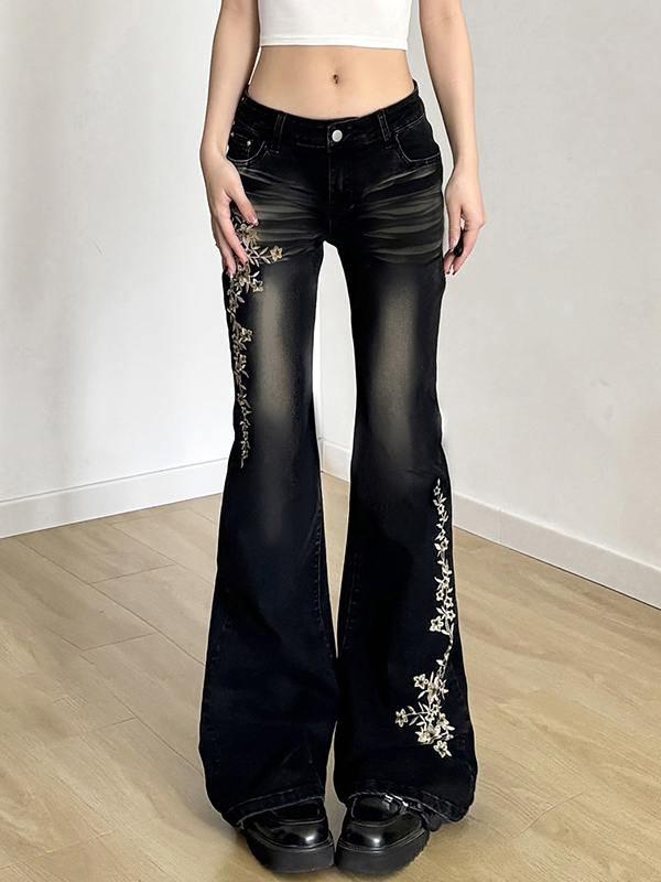 American Vintage – Schlagjeans mit Rosenstickerei