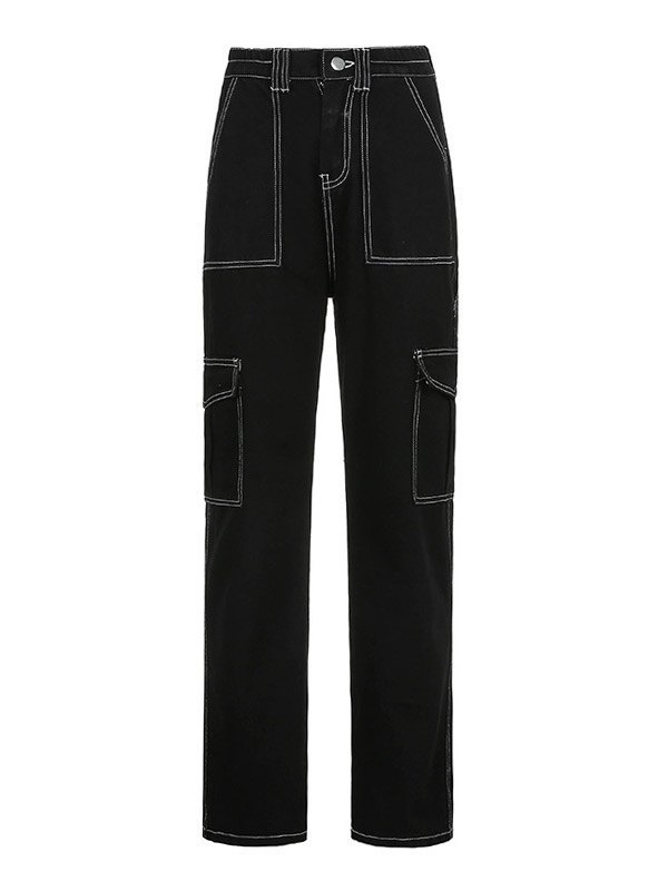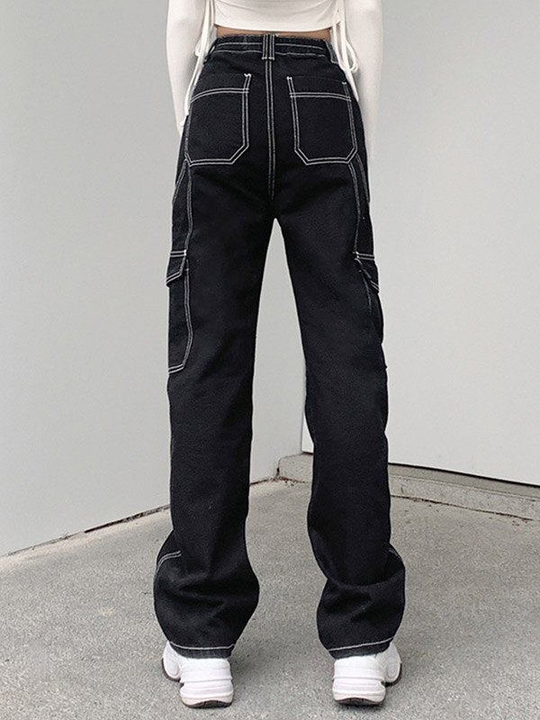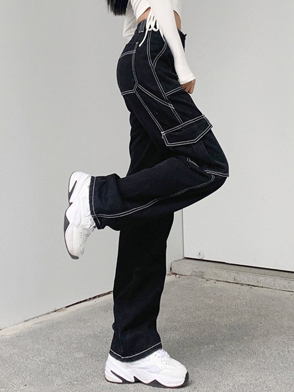 Gerade Cargo Jeans mit hoher Taille Menge