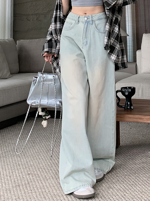 Hell gewaschene Boyfriend-Jeans mit hoher Taille