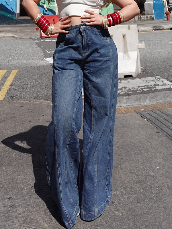 Lockere Boyfriendjeans mit mehreren Teilern Menge