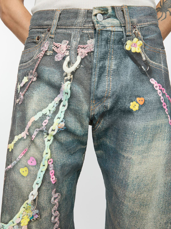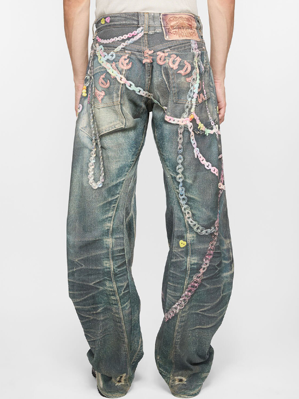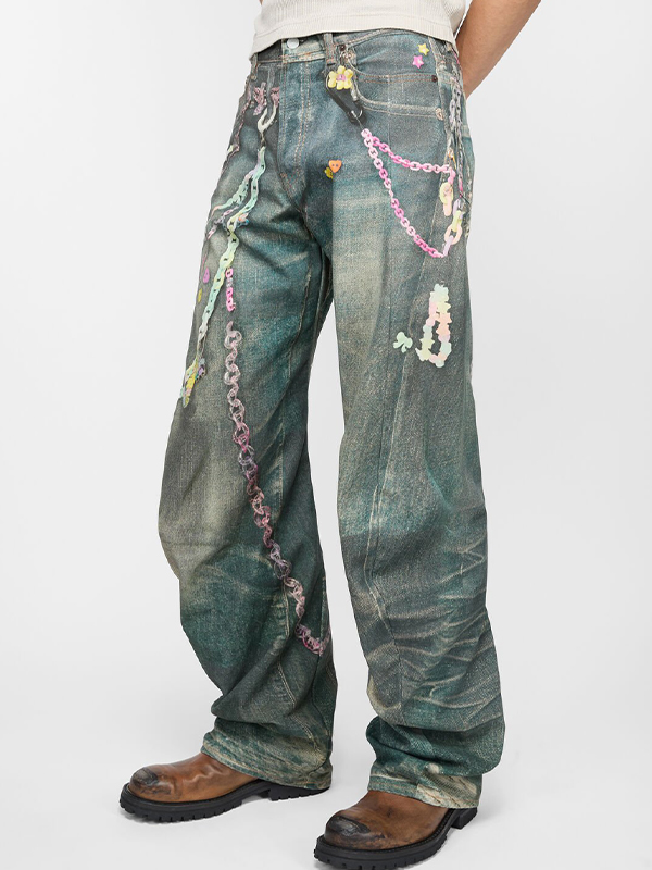 Lockere Jeans für Herren mit Kettenmuster Menge