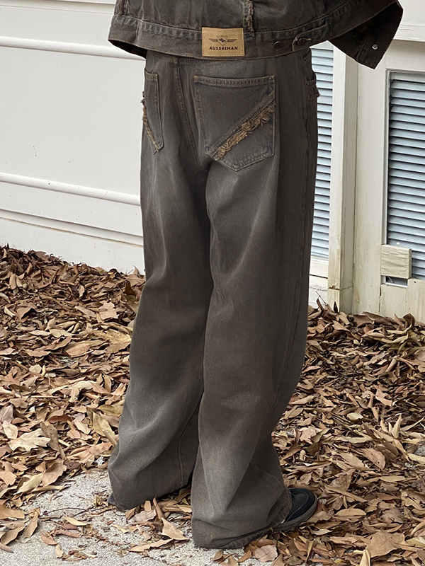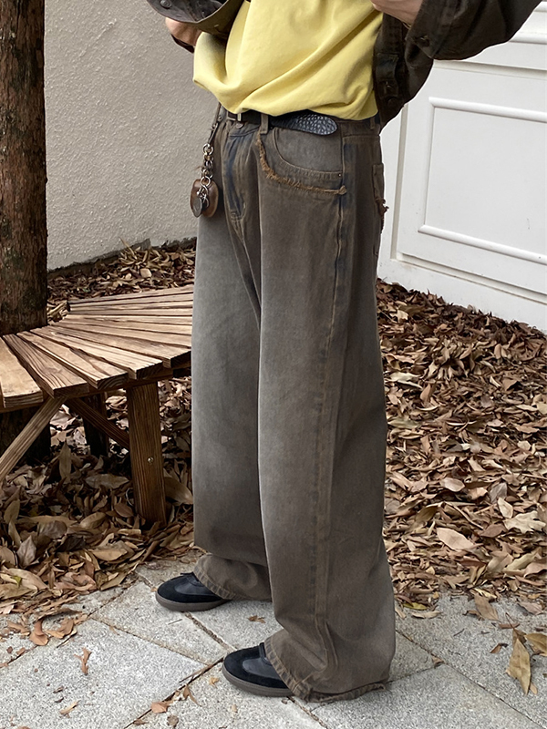 Lose Herrenjeans mit Vintage-Waschung und rohem Rand