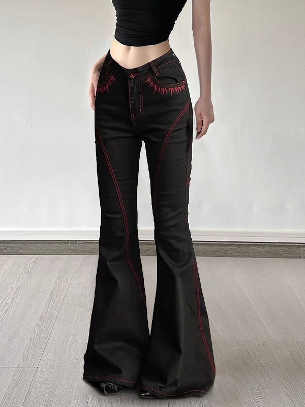 Schlagjeans mit Stickerei im dunklen Stil