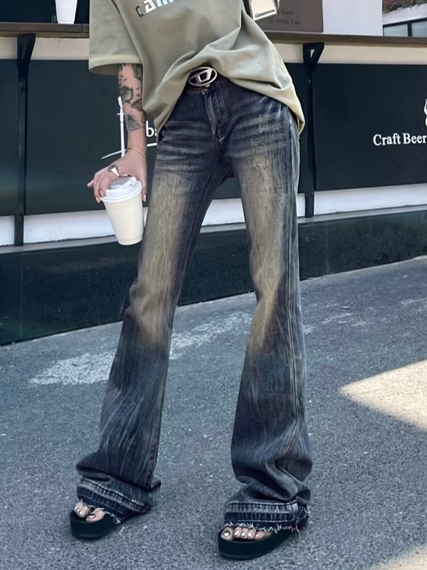 Vintage-Stickerei-Jeans mit niedrigem Bund und ungesäumtem Rand Menge
