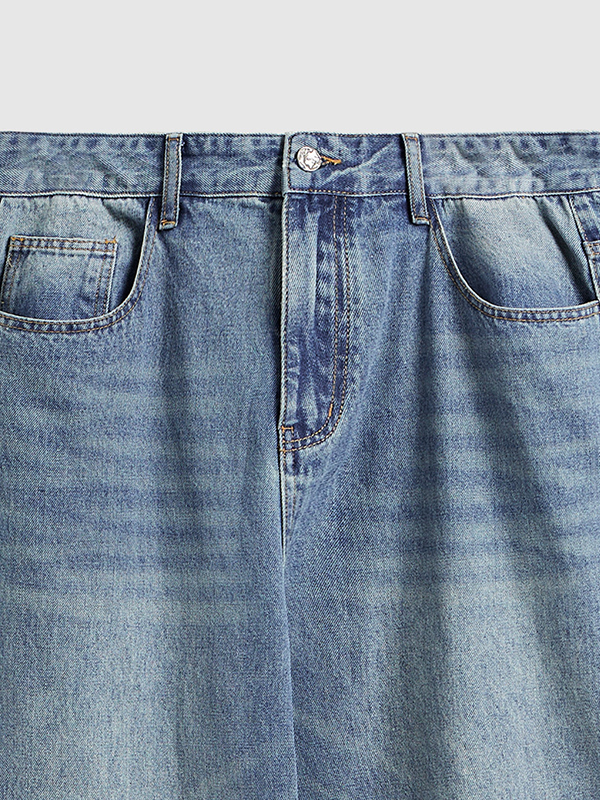 Weite Jeans mit ausgewaschenem Saum und weitem Bein Menge