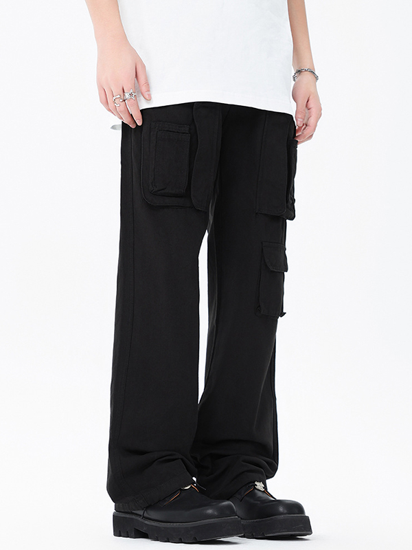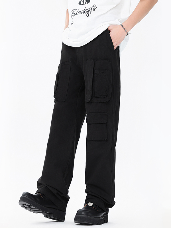Lockere schwarze Cargohose mit mehreren Taschen für Herren Menge