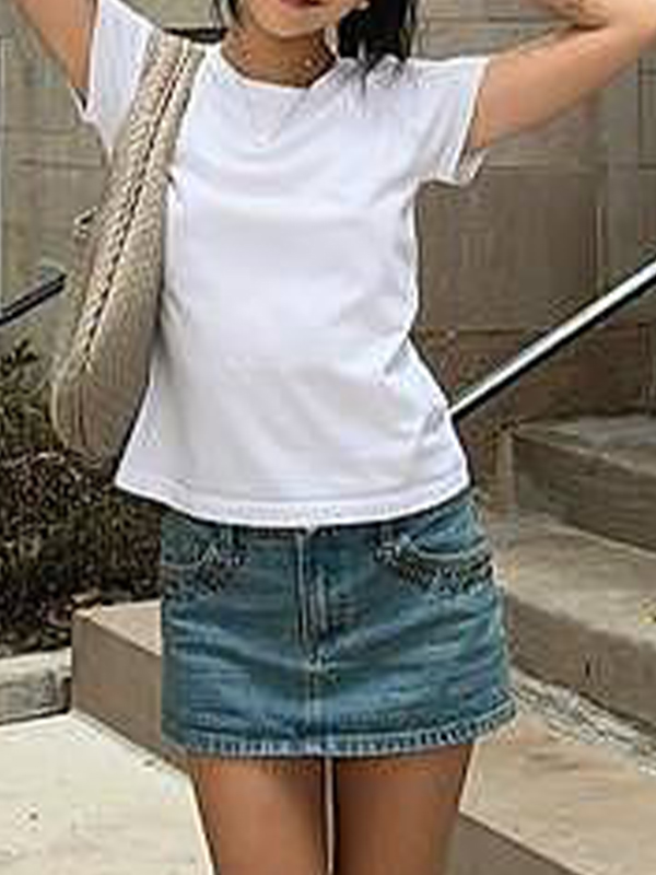 Mit Nieten besetzter Low Rise Minirock aus gewaschenem Denim Menge